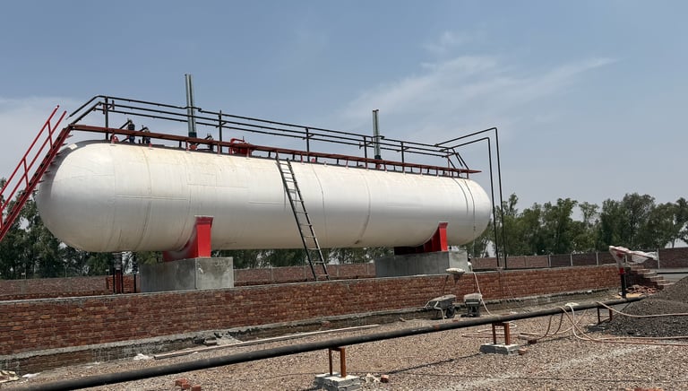 Our fascility is equipped with a high-capacity 90 MT LPG storage tank designed in accordance with international safety standards. The tank is fitted with advanced pressure relief systems, monitoring instruments, and safety valves to ensure secure and efficient storage under all operating conditions.