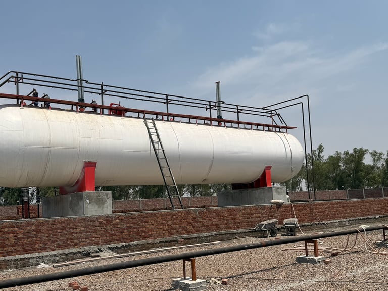 Our facility includes a 90 MT pressurized storage tank designed for secure and controlled LPG handling. The system is equipped with advanced safety mechanisms, pressure monitoring, and vapor management for stable operations.